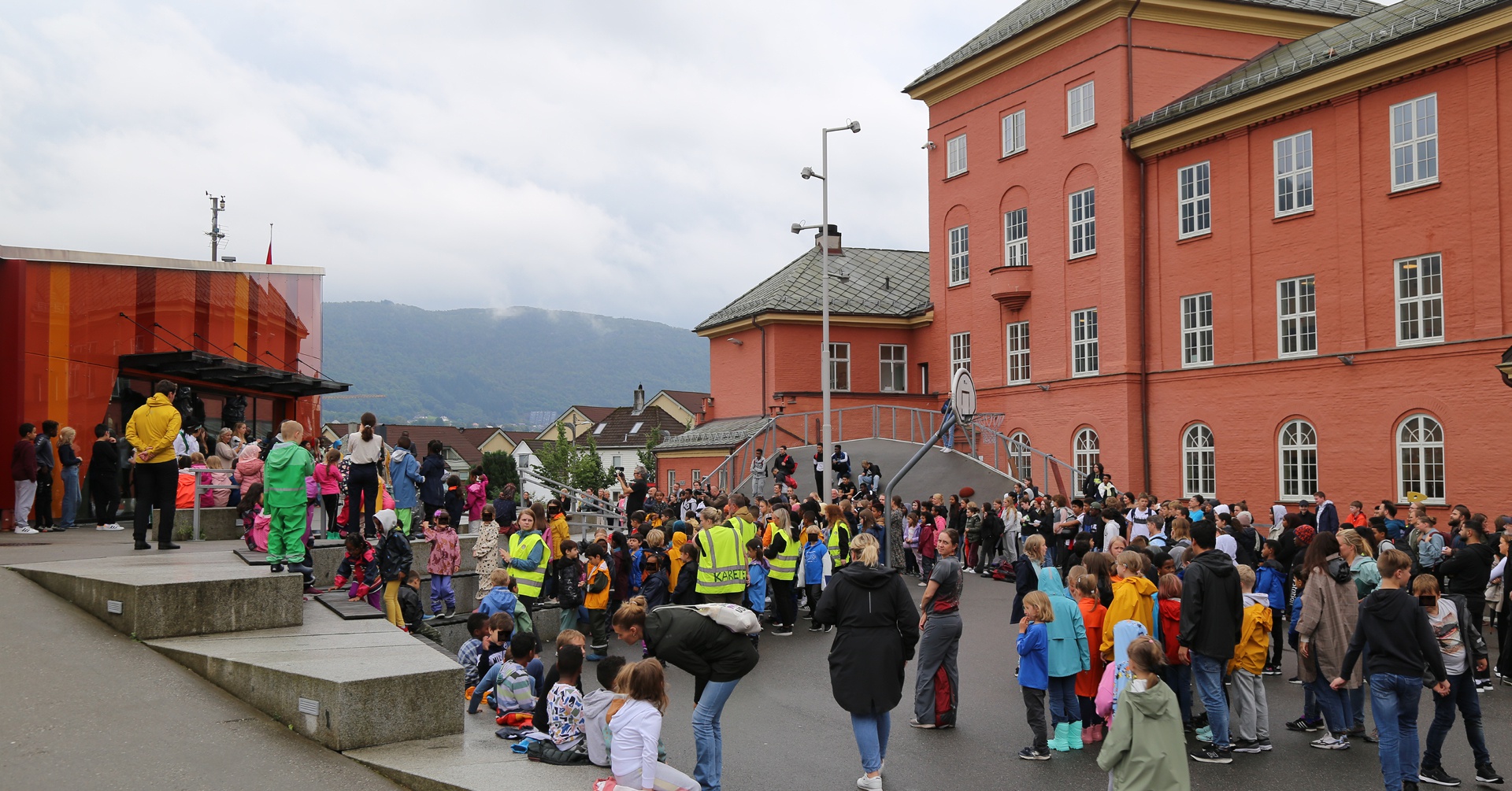 Åpningsseremoni på plassen mellom Ny-Krohnborg senter, hvor det nye biblioteket ligger, og Ny-Krohnborg skole. Foto: Anne Marthe Dyvi.