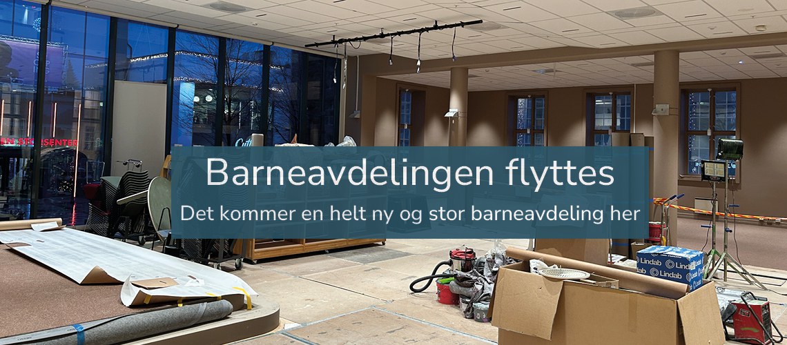- Barnebiblioteket skal flyttes til andre enden av huset for å få mer plass til barn og barnefamilier. Spesielt i helgene er det behov for mer plass. Det nye barnebiblioteket vil bestå av Storsalen og rommet ved siden av som tidligere var lokalhistorisk avdeling.