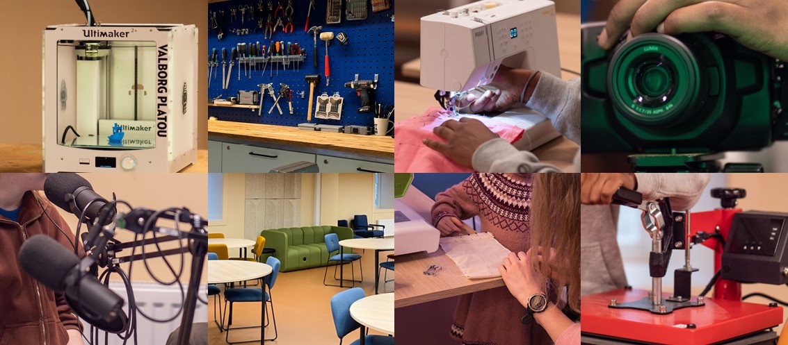 Vi har: symaskiner, overlock, 3D- printere, laserkutter, CNC-fres, vinylkutter og diverse småverktøy.