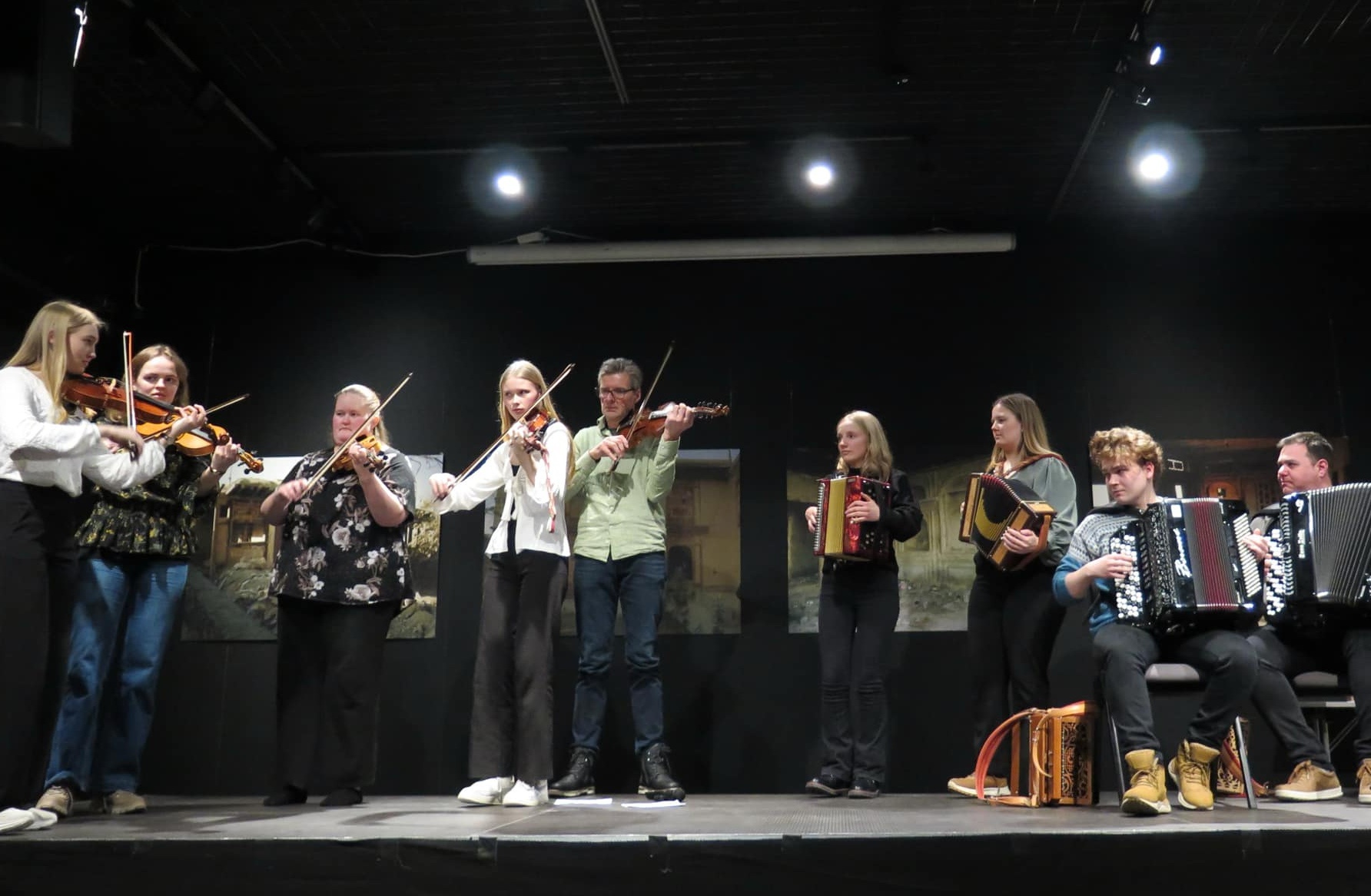 - Første innslag på folkemusikkens kveld er lyttekonsert i Auditoriet med Strengjarhaugen spelemannslag frå Voss.