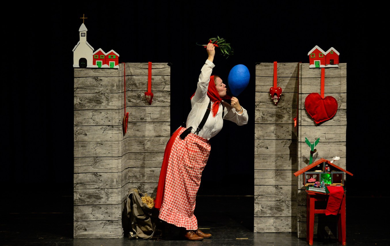 Teskjekjerringa har det fryktelig travelt. Det er jo så mye som skal gjøres ferdig til jul! Men det er ikke så lett å få alt gjort når hun plutselig blir så liten som ei teskje. Denne koselige juleforestillingen baserer seg på Alf Prøysens fortelling om Teskjekjerringa på julehandel.