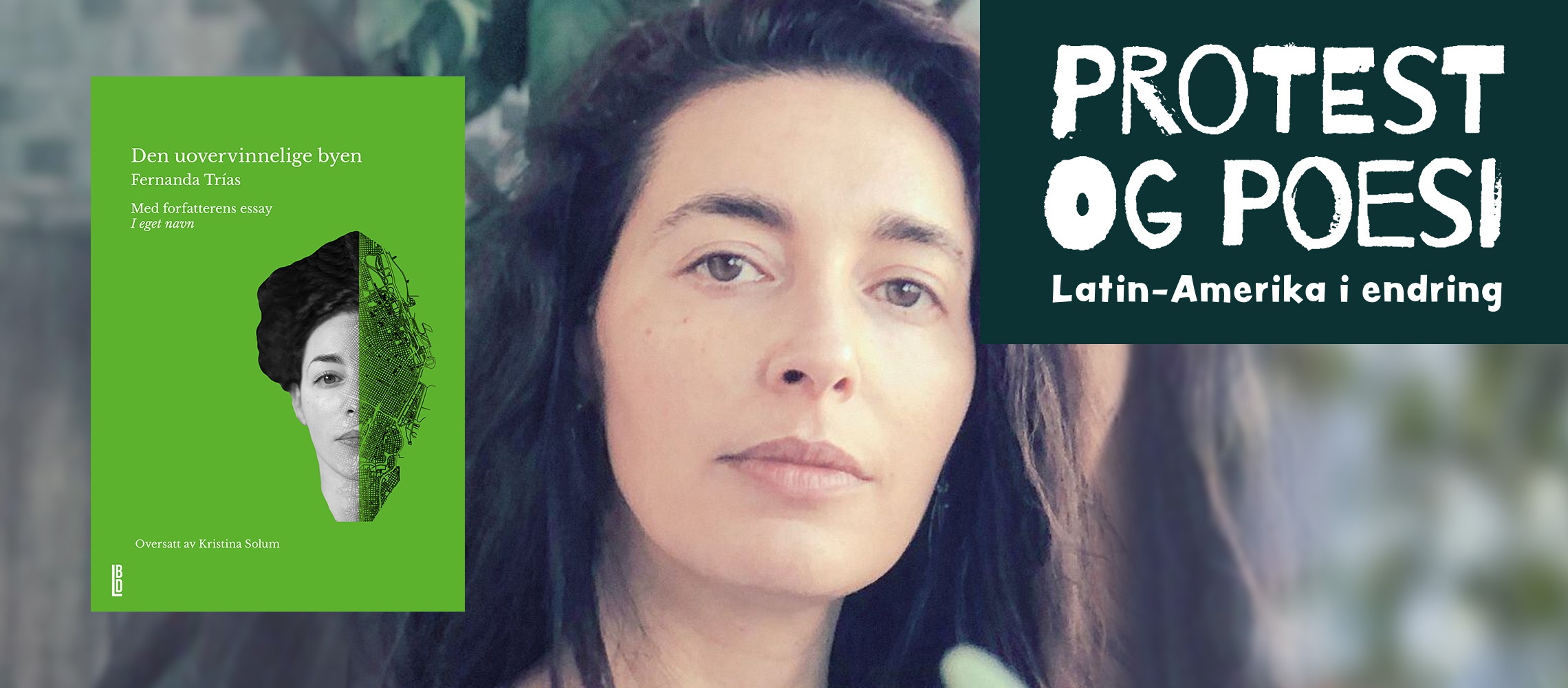 I Den uovervinnelige byen skriver uruguayanske Fernanda Trías om veien tilbake til seg selv etter et destruktivt, voldelig forhold, og om å møte frykten og skammen hun har følt i altfor lang tid. Trías regnes av mange som en av de viktigste latinamerikanske stemmene i dag. Hun kommer til Bergen for å snakke med redaktørene i forlaget Les Bones Dones om bøkene sine, om kjønnsbasert vold, og om vold i forholdet mellom mennesket og naturen. Samtalen skal blant annet handle om frykt, sinne, mulige forløsninger, kropper, omsorg og litteratur.