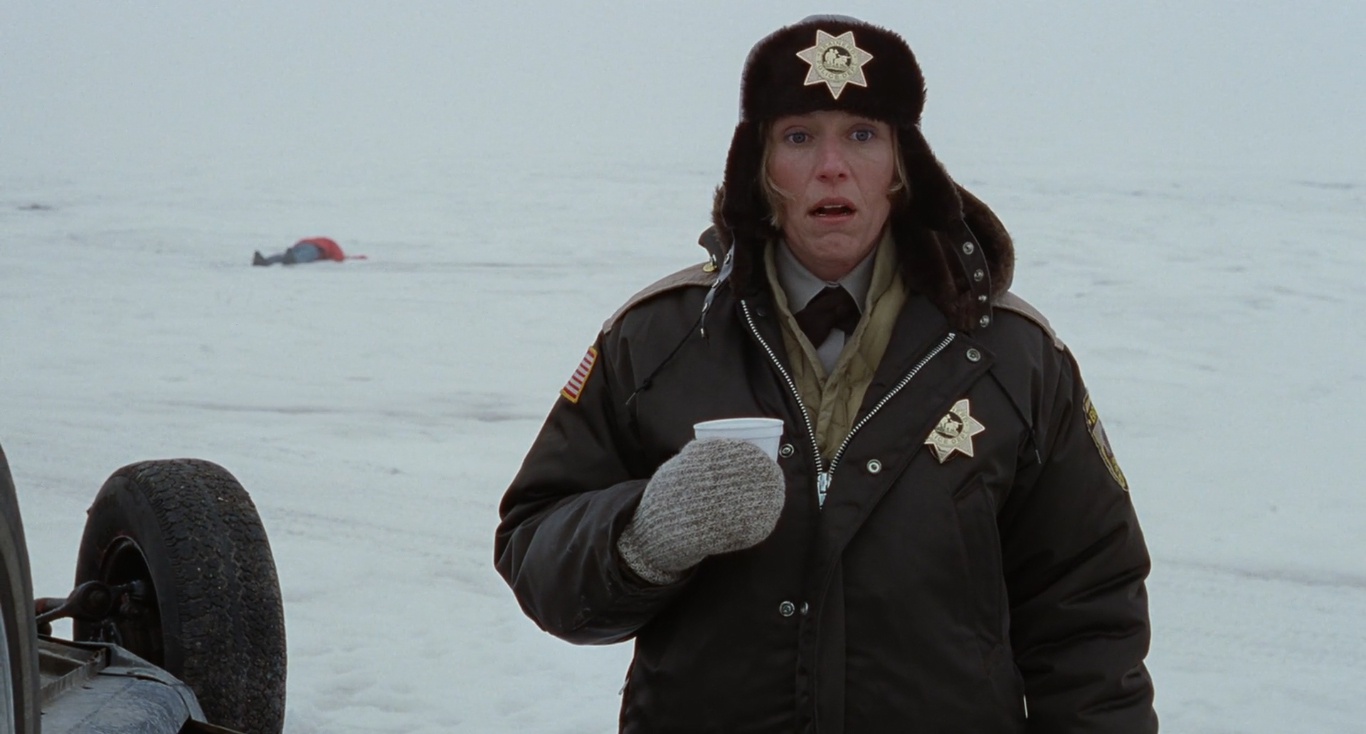 A lot can happen in the middle of nowhere. Vi skal til snødekkede Minnesota: I desember viser vi Fargo, den prisvinnende svarte krimkomedien fra Coen-brødrene, som handler om en gjeldstynget selger som arrangerer kidnappingen av sin egen kone, og den påfølgende etterforskningen ledet av den gravide sheriff Gunderson.