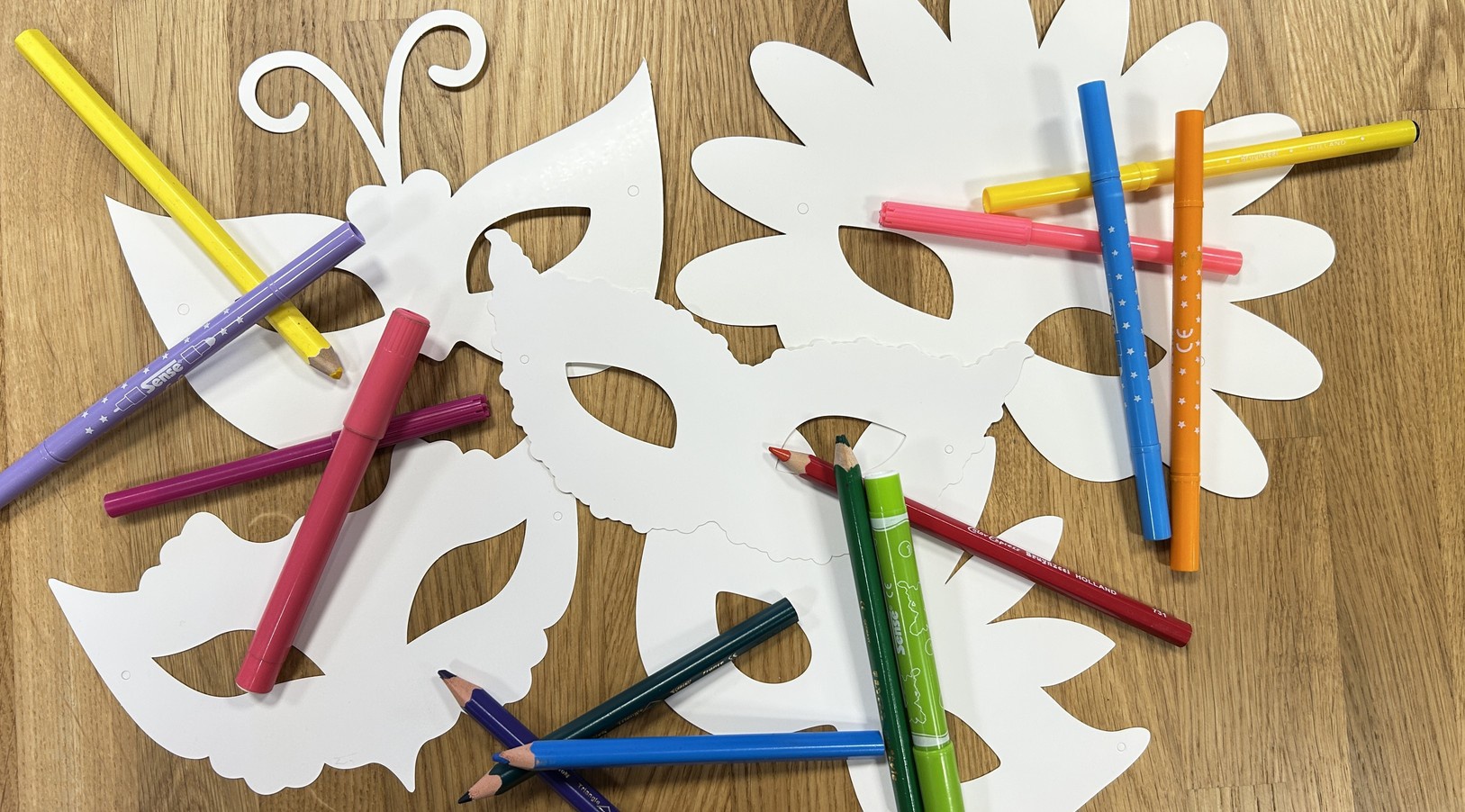 De større barna kan delta på verkstedet der vi lager karnevalsmasker samme dag.