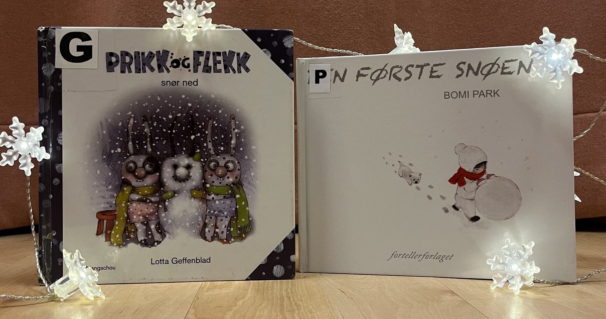 Vi leser bøkene "Den første snøen" og "Prikk og Flekk snør ned".