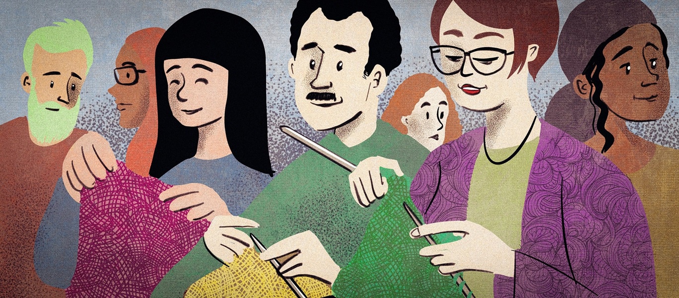 Vi møtes på læringsrommet tredje mandag hver måned. Se kommende datoer for Håndarbeid og høytlesing her: Håndarbeid og høytlesing — Bergen Offentlige Bibliotek (bergenbibliotek.no)