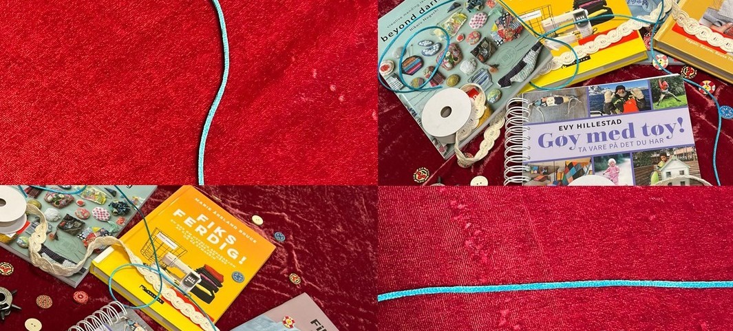 Velkommen til reparasjons- og fikseverksted for familier. Ta med tekstiler som klær eller gamle vesker/bagger, og vi finner en fiks løsning til akkurat din tekstil. Vi hjelper gjerne med ideer, og har mange bøker du kan kikke i for å bli inspirert.