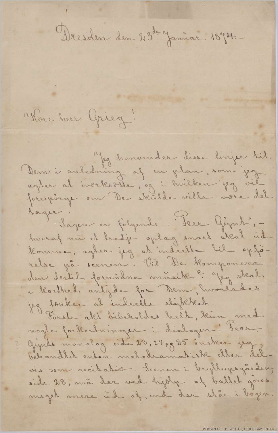 Her finnes digitalisert rundt 5700 brev, 890 av disse er fra Grieg. Samlingen omfatter brev fra berømte samtidige kunstnere som Brahms, Tsjajkovskij, Ibsen og Bjørnson, fra kjente politikere, forleggere, impresarioer, brev fra venner, beundrerbrev, brev fra personer som selv ønsket berømmelse, fra kunstnere i trange kår, som ba om økonomisk hjelp og familiebrev. En rekke av brevene er transkribert.