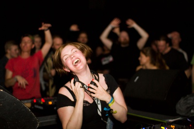 Jeg hadde min første offisielle spillejobbb på translokasjonsfesten (les. eksamensfest) for klassen over oss på Kaospilotene i Århus (DK) i 2007, hvor temaet var at de uteksaminerte var kommet til himmelen (inkl litt helvete). Jeg og to andre rå damer lagde “Hellbar” i et knøttlite kjellerlokale med plass til maks 20 personer og spilte hver vår sjanger gjennom kvelden. Jeg beatmikset techno og spilte for første gang vinylplater jeg hadde kjøpt opp igjennom årene, de to andre dubstep og elektronika. Det ble veldig fint.